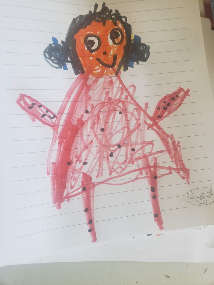 These are pictures drawn by a 5yo girl in foster care of her favorite characters from the show Miraculous Ladybug.